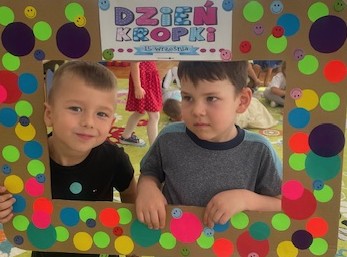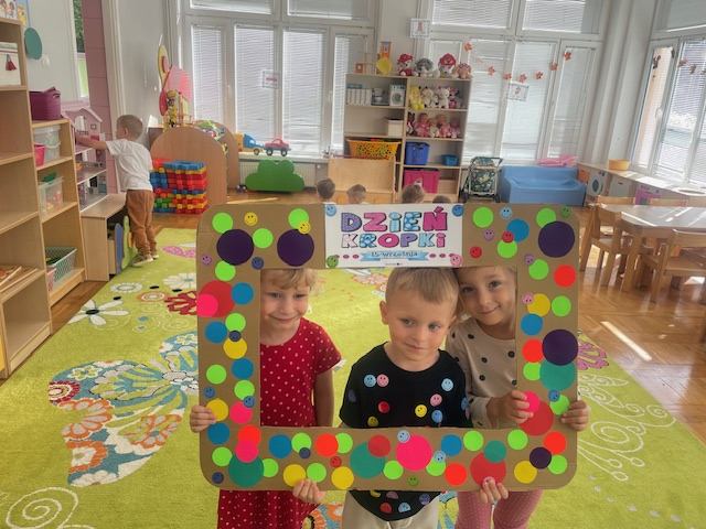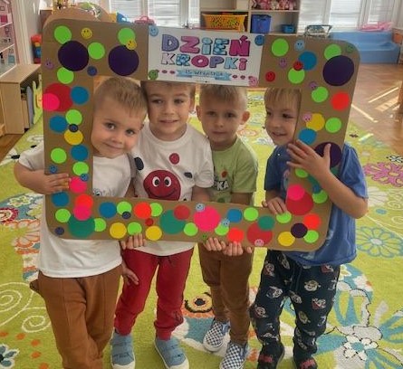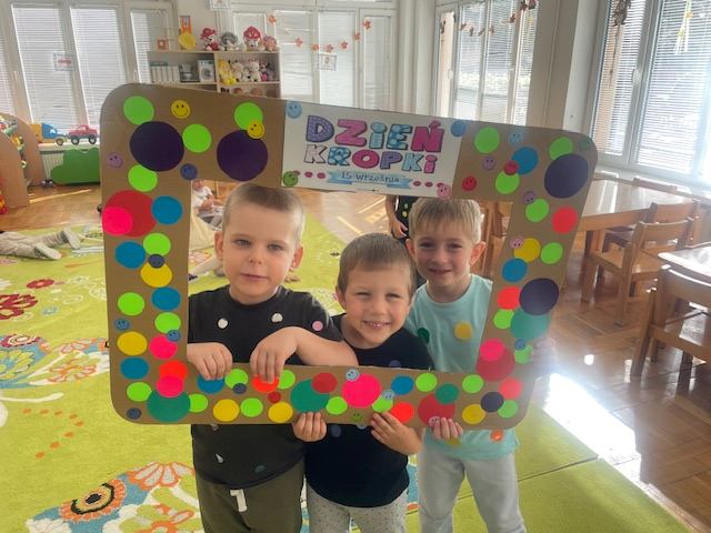 Zdjecia przedstawiają dzieci podczas dnia kropki.