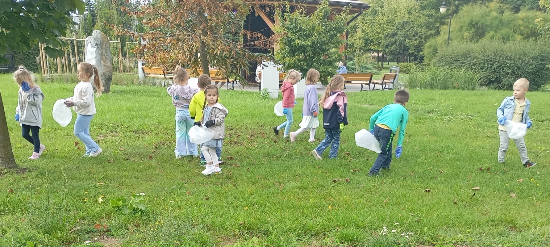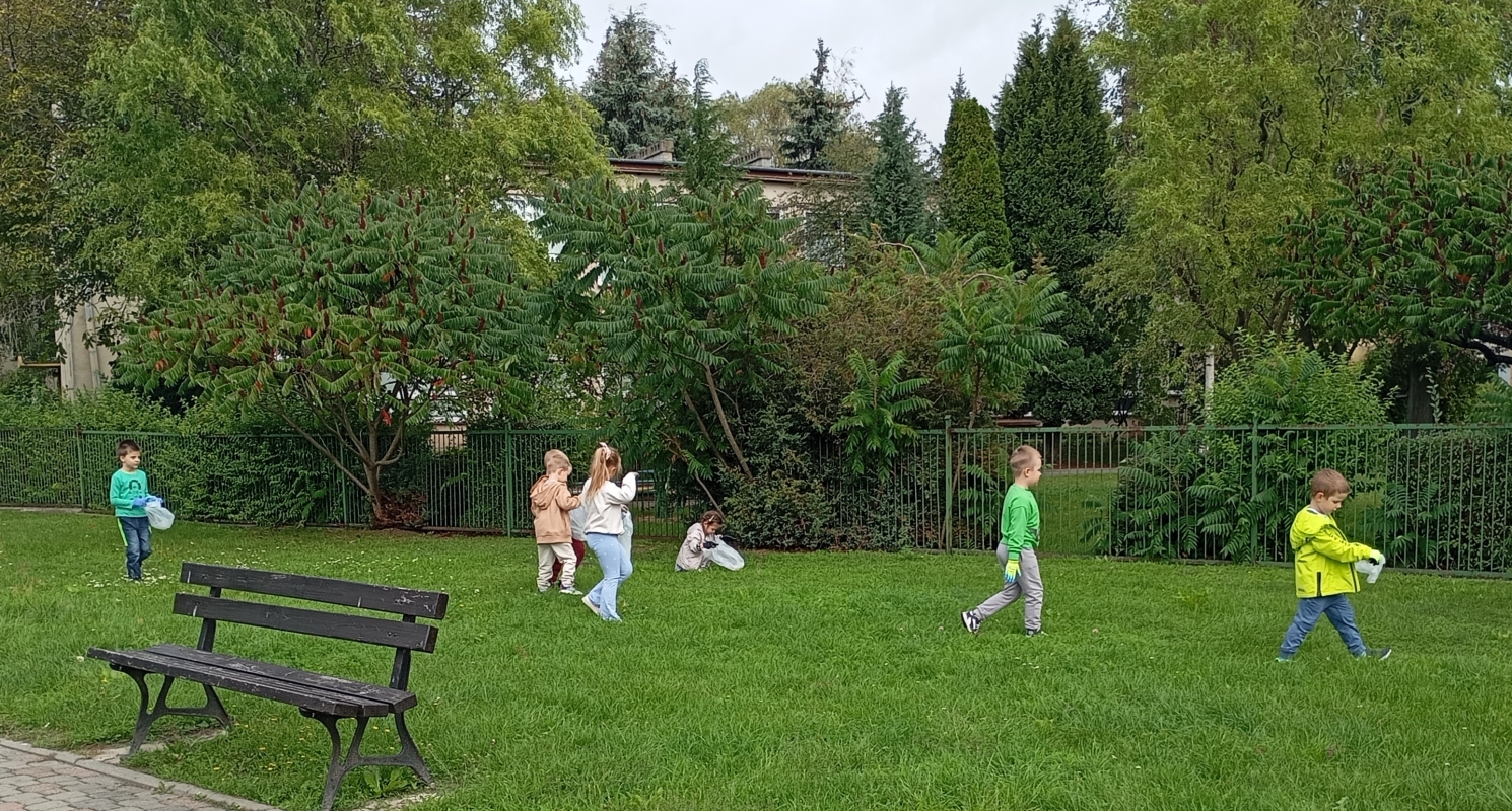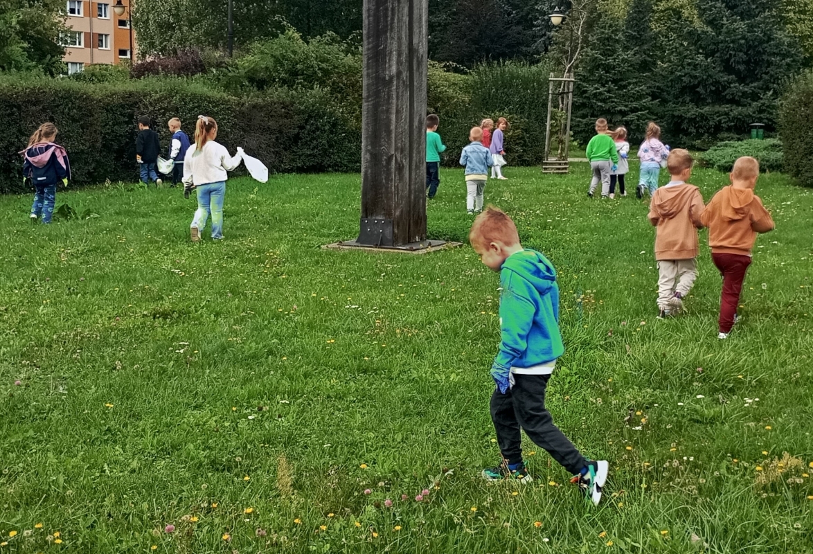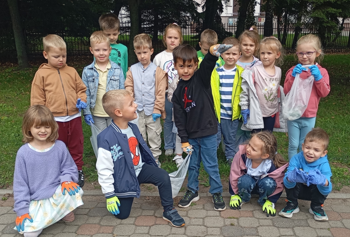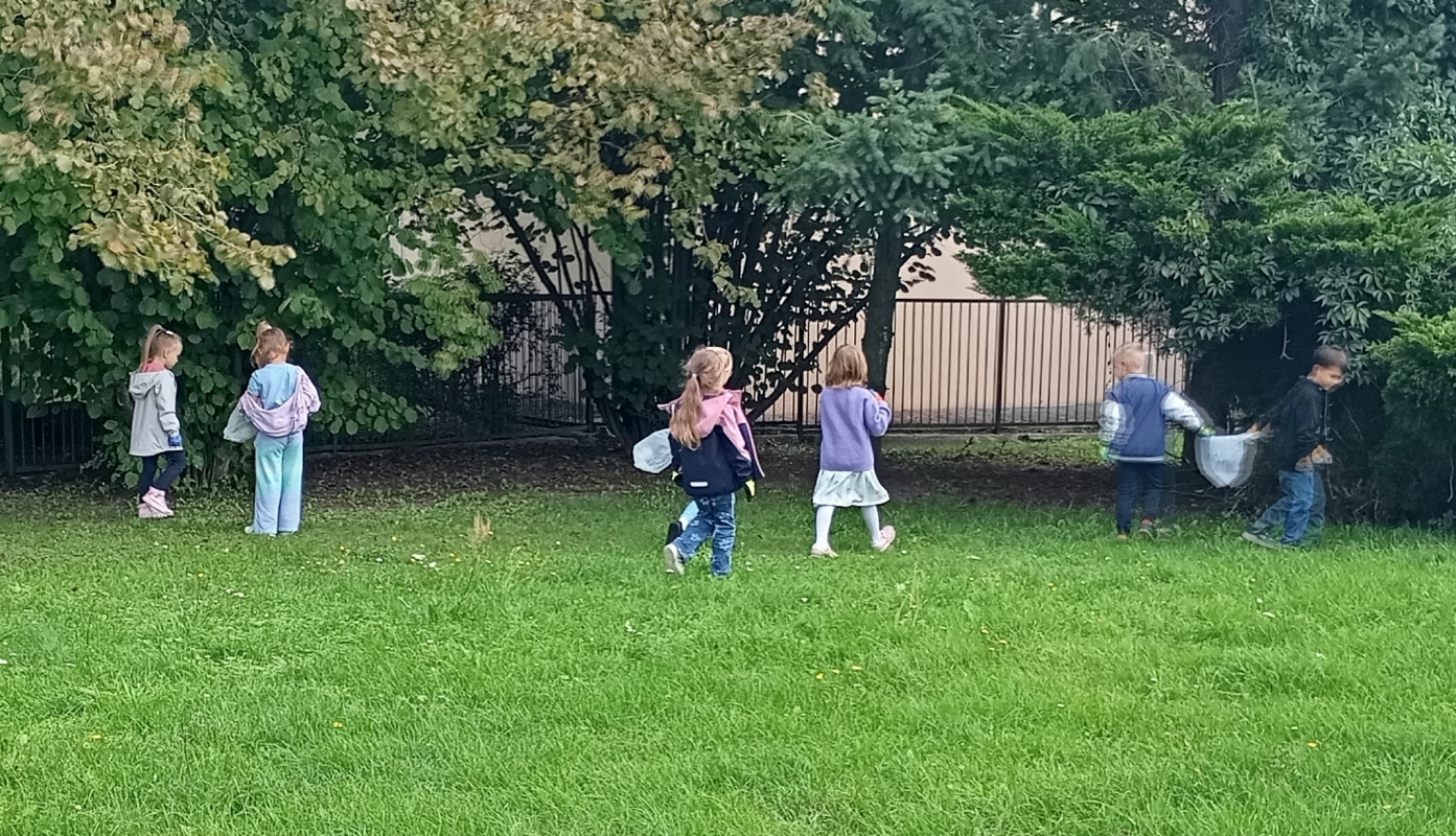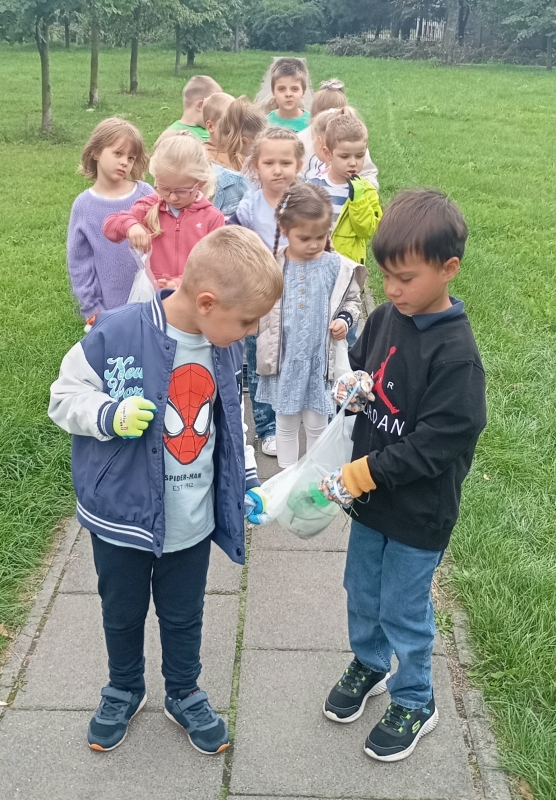W ramach ogólnopolskiej akcji " Sprzątanie świata" dzieci z grupy III wzięły udział w wydarzeniu ekologicznym, którego celem było dbanie o czystość najbliższego otoczenia. Wyposażone w rękawiczki i worki na śmieci, przedszkolaki udały się na teren wokół przedszkola, aby wspólnie posprzątać okolice. Z ogromnym zaangażowaniem zbierały papierki, plastikowe butelki i inne odpady, które później trafiły do odpowiednich pojemników. Zdjęcia przedstawiają dzieci podczas akcji Sprzątanie świata.