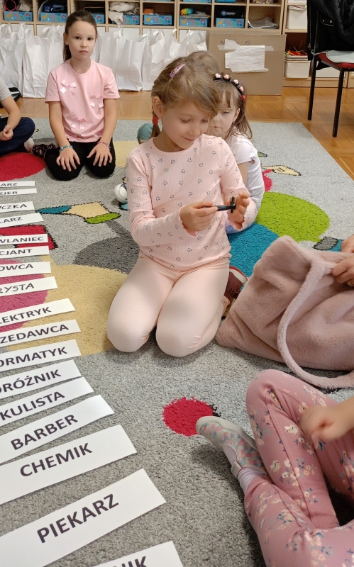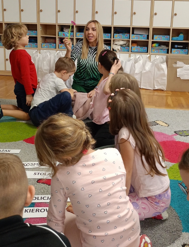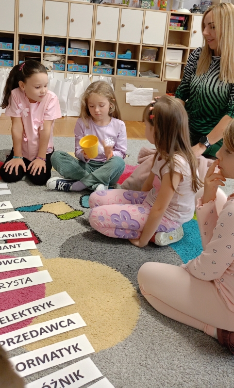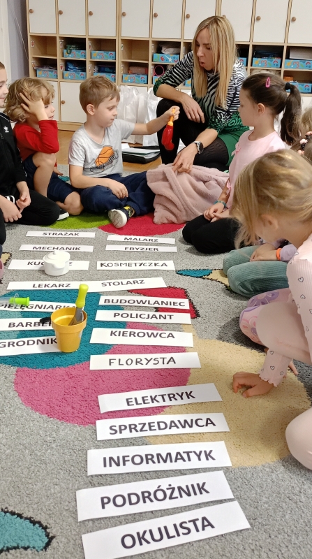 24 października 2025 roku w grupie IV odbyły się zajęcia prowadzone przez Centrum Rozwoju Edukacji. Dzieci poznały świat zawodów- poszczególne profesje, prace jakie wykonują poszczególne zawody, miejsca ich pracy oraz narzędzia, jakich używają. Zajęcia oparte były na autorskim scenariuszu. Każde z dzieci otrzymało na zakończenie torbę zawierającą atrakcyjne pomoce dydaktyczne oraz imienny dyplom „Eksperta od zawodów”. Zdjęcia przedstawiają dzieci podczas udziału w zajęciach.