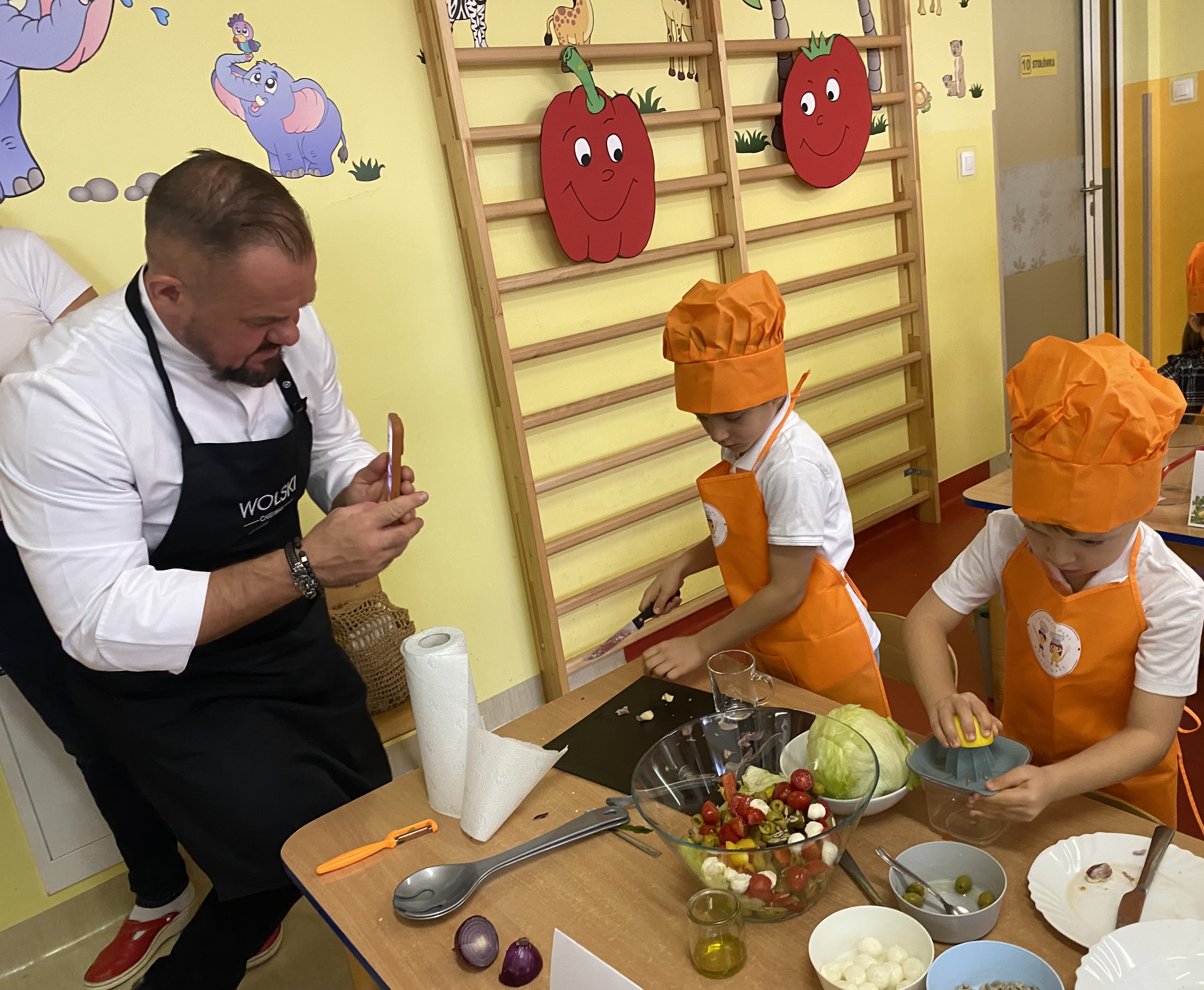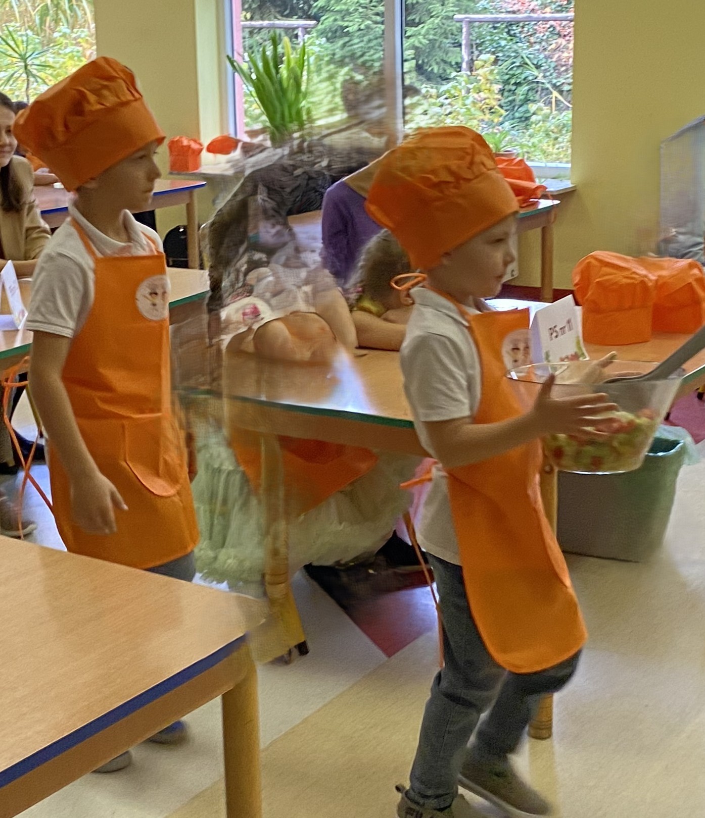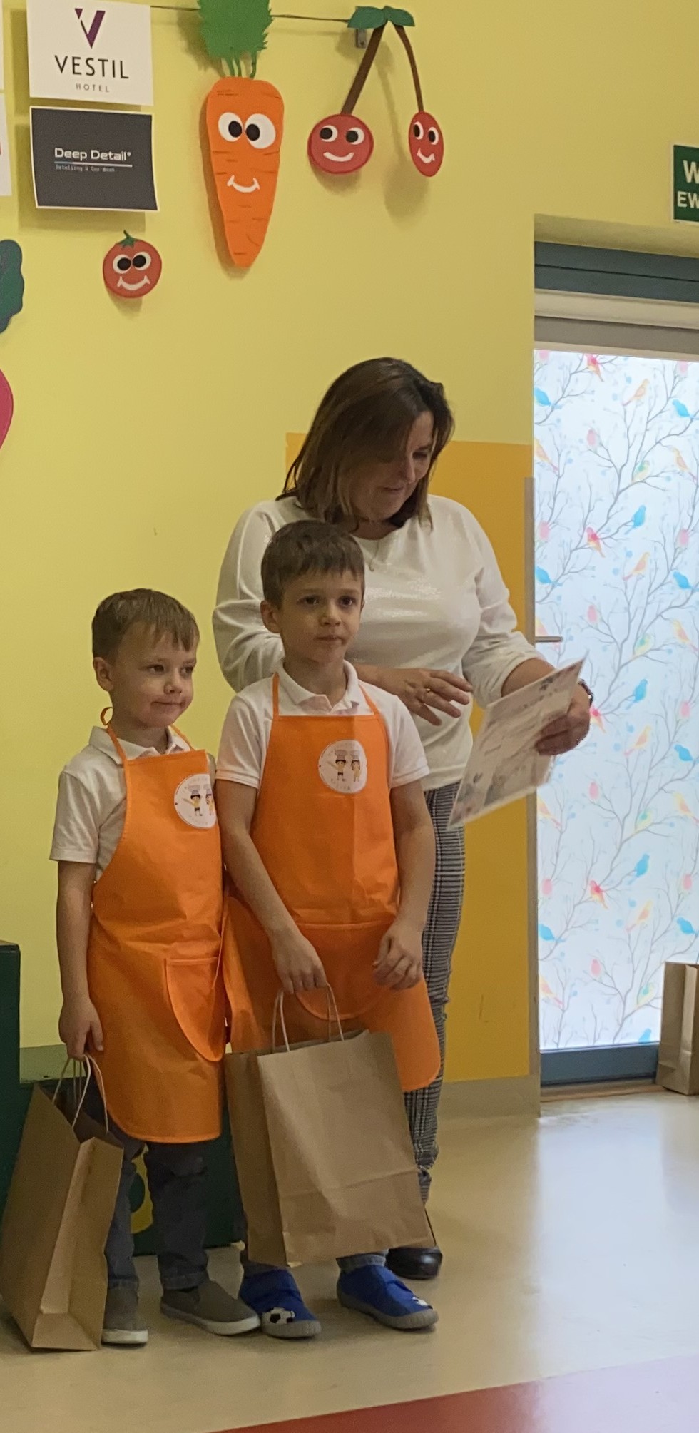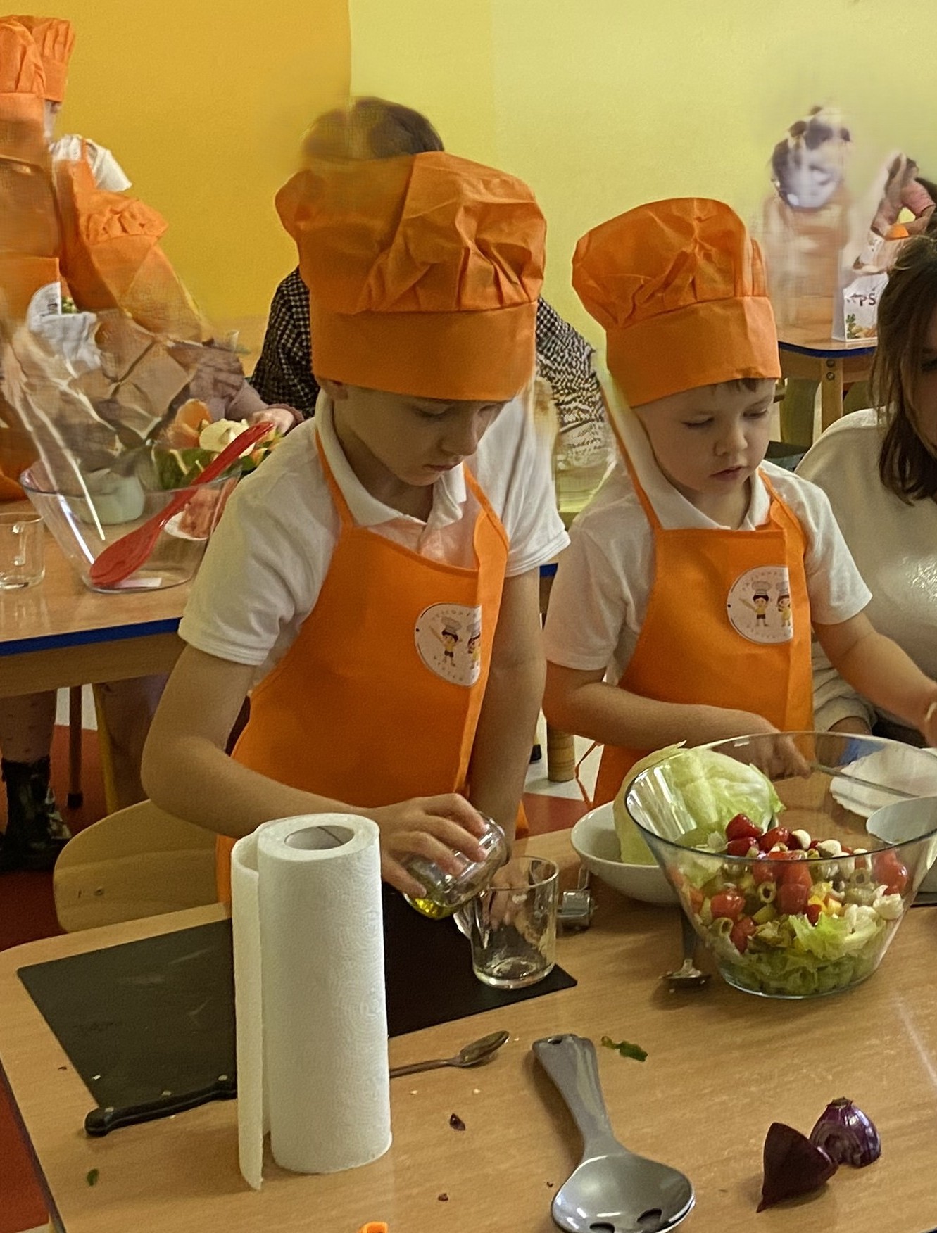 Nasze przedszkole w konkursie reprezentowali Oliwier K. i Krzysztof W. z grupy 4. Chłopcy samodzielnie przygotowali sałatkę i zaprezentowali przed jury jej walory zdrowotne. Gratulacje !!! Zdjęcia przedstawiają dzieci podczas konkursu Master Szef.