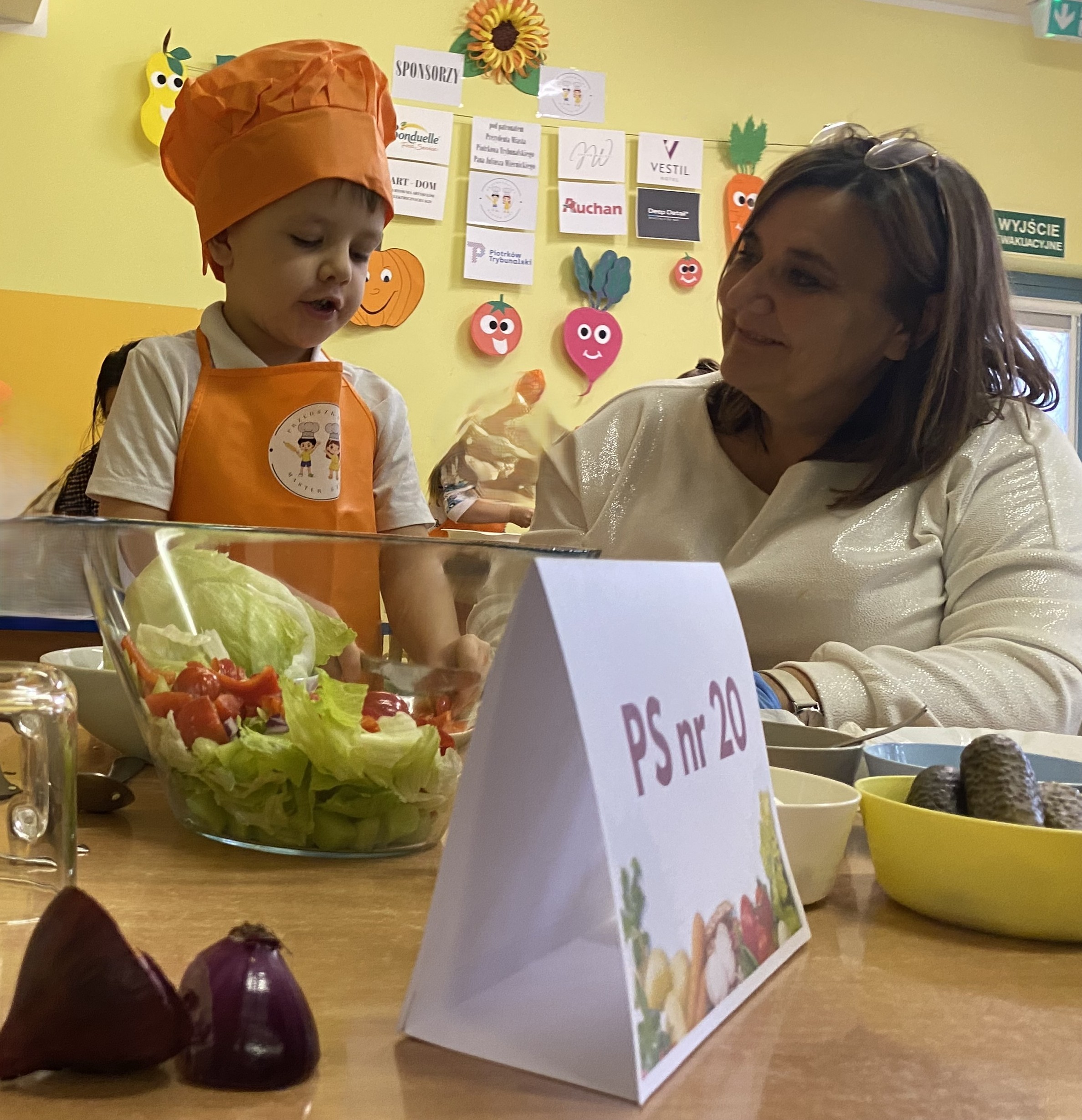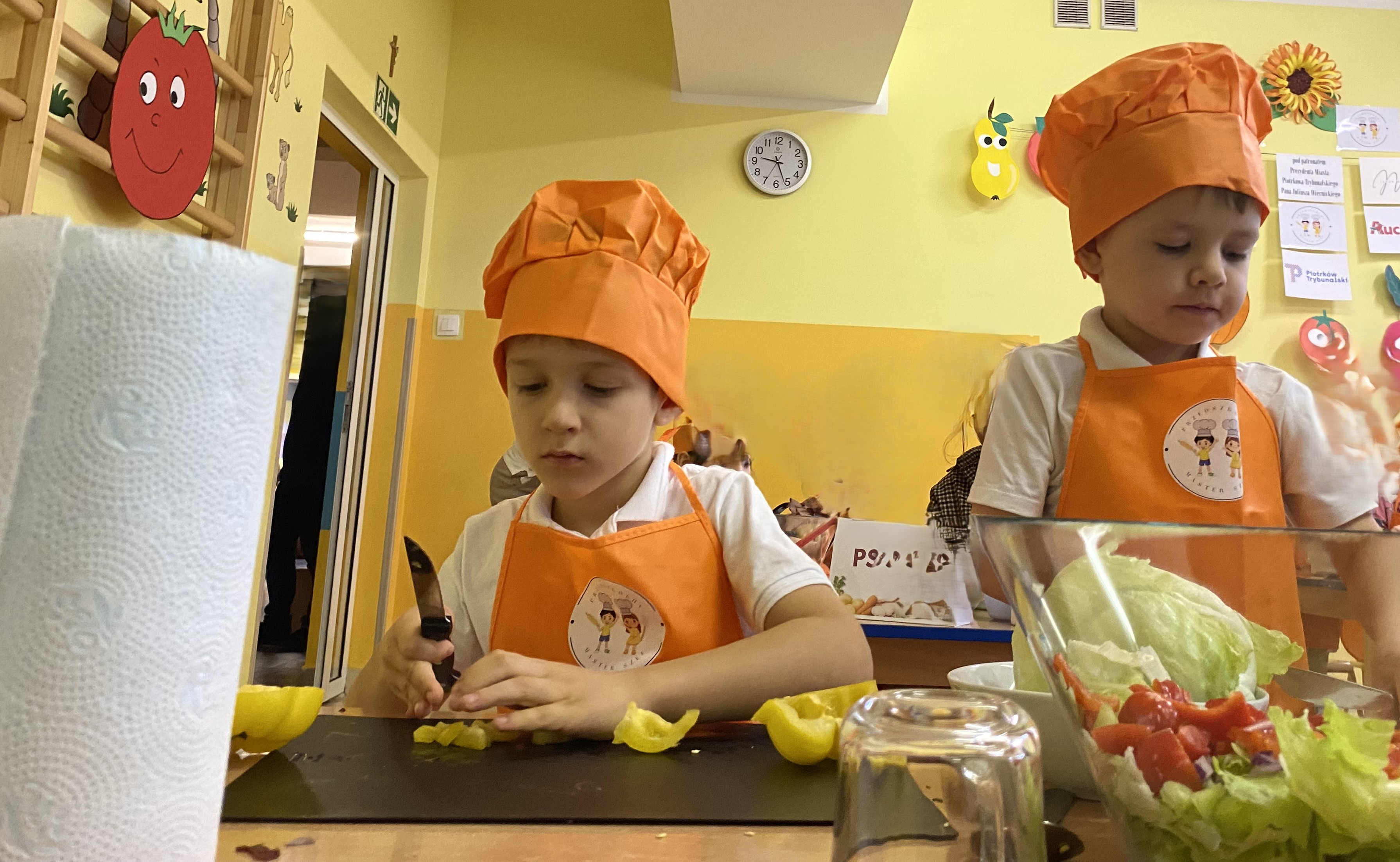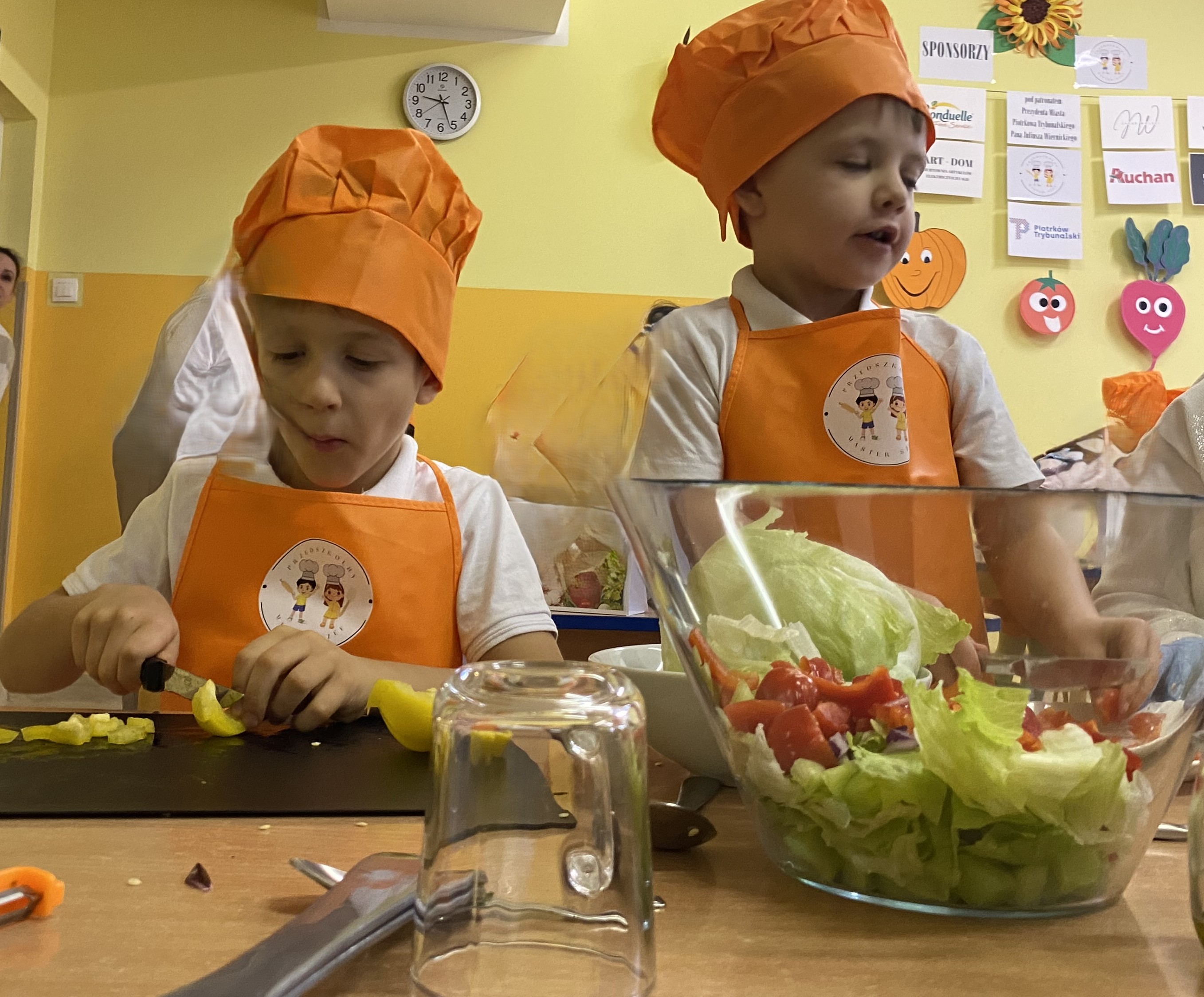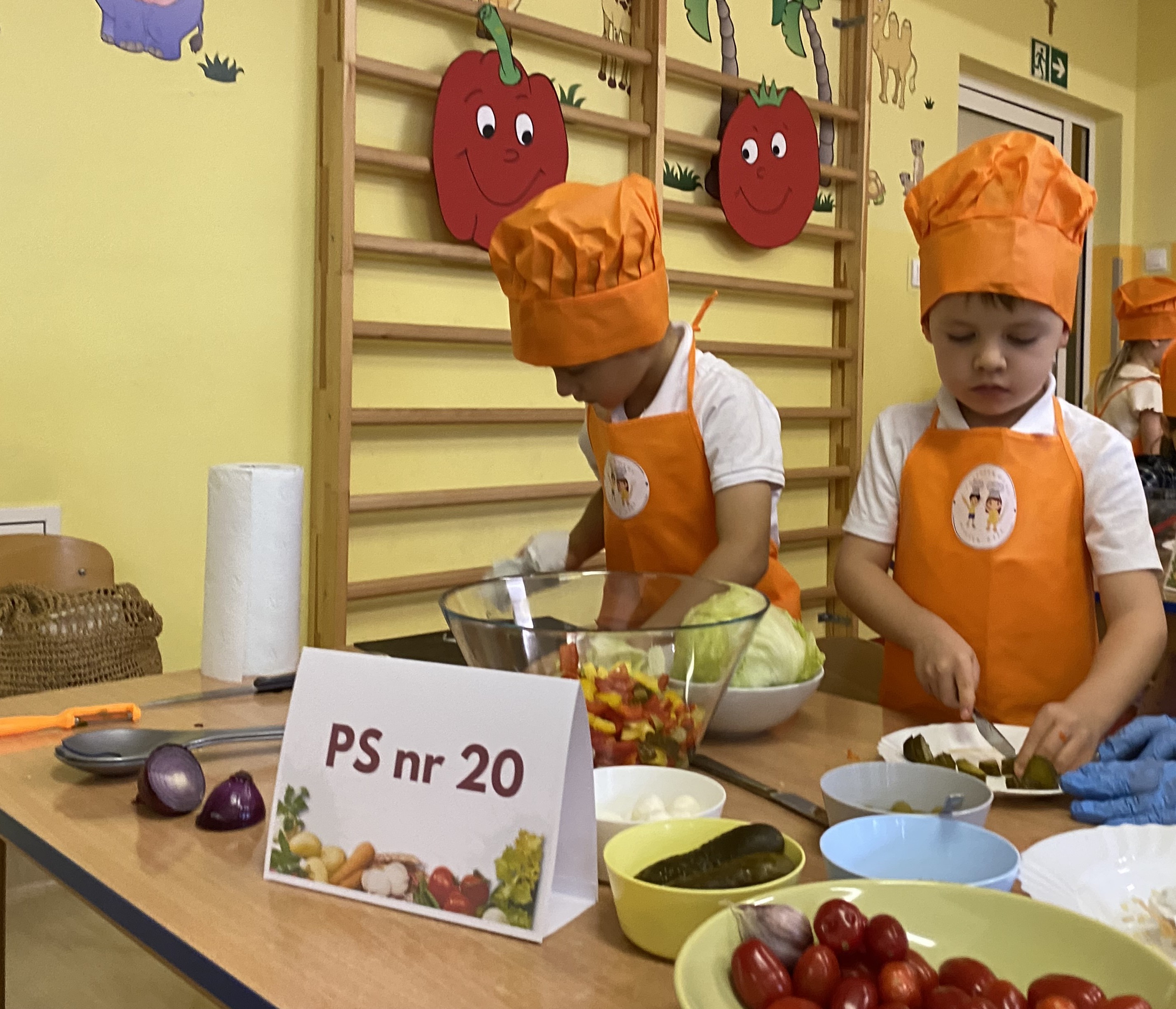 Nasze przedszkole w konkursie reprezentowali Oliwier K. i Krzysztof W. z grupy 4. Chłopcy samodzielnie przygotowali sałatkę i zaprezentowali przed jury jej walory zdrowotne. Gratulacje !!! Zdjęcia przedstawiają dzieci podczas konkursu Master Szef.