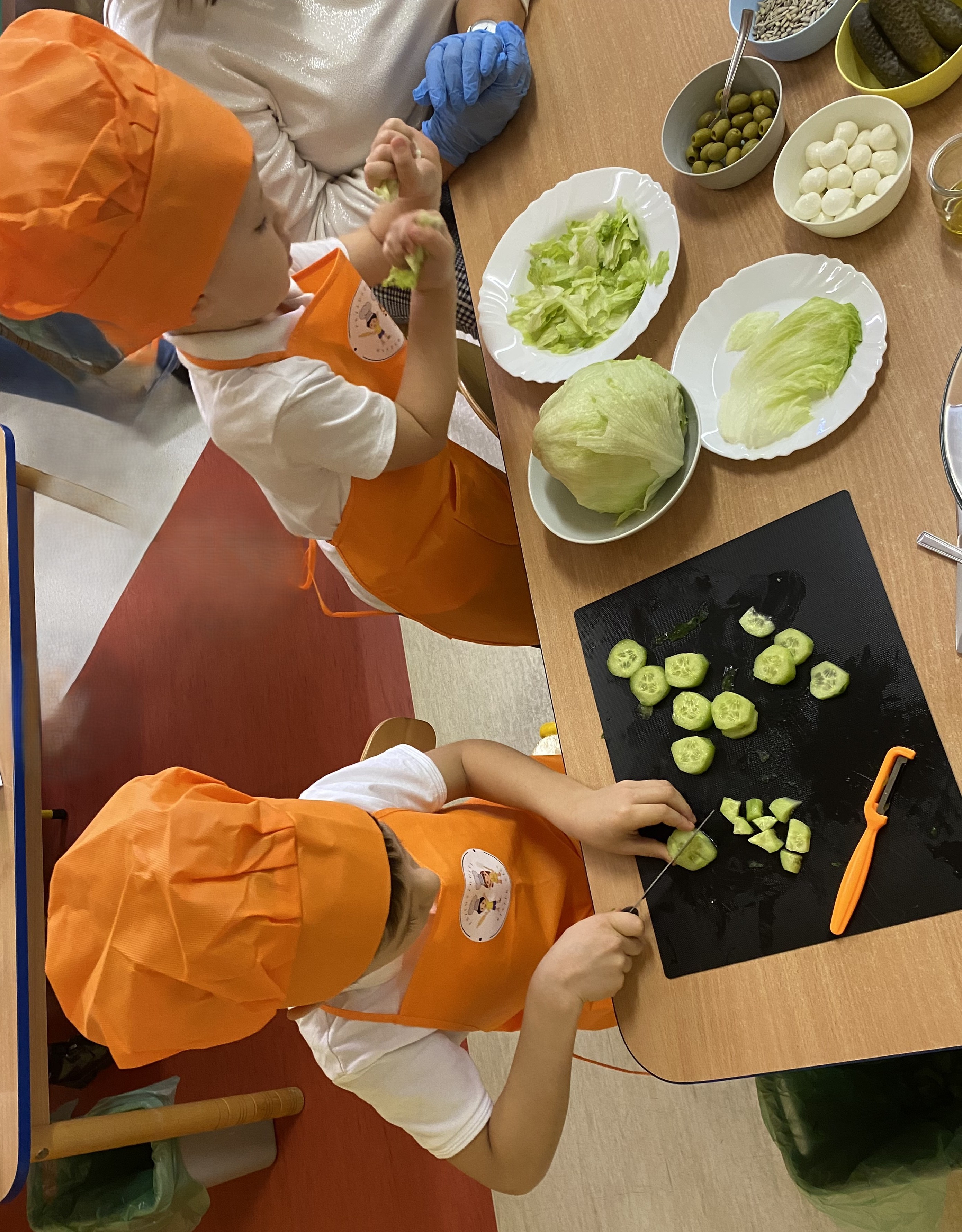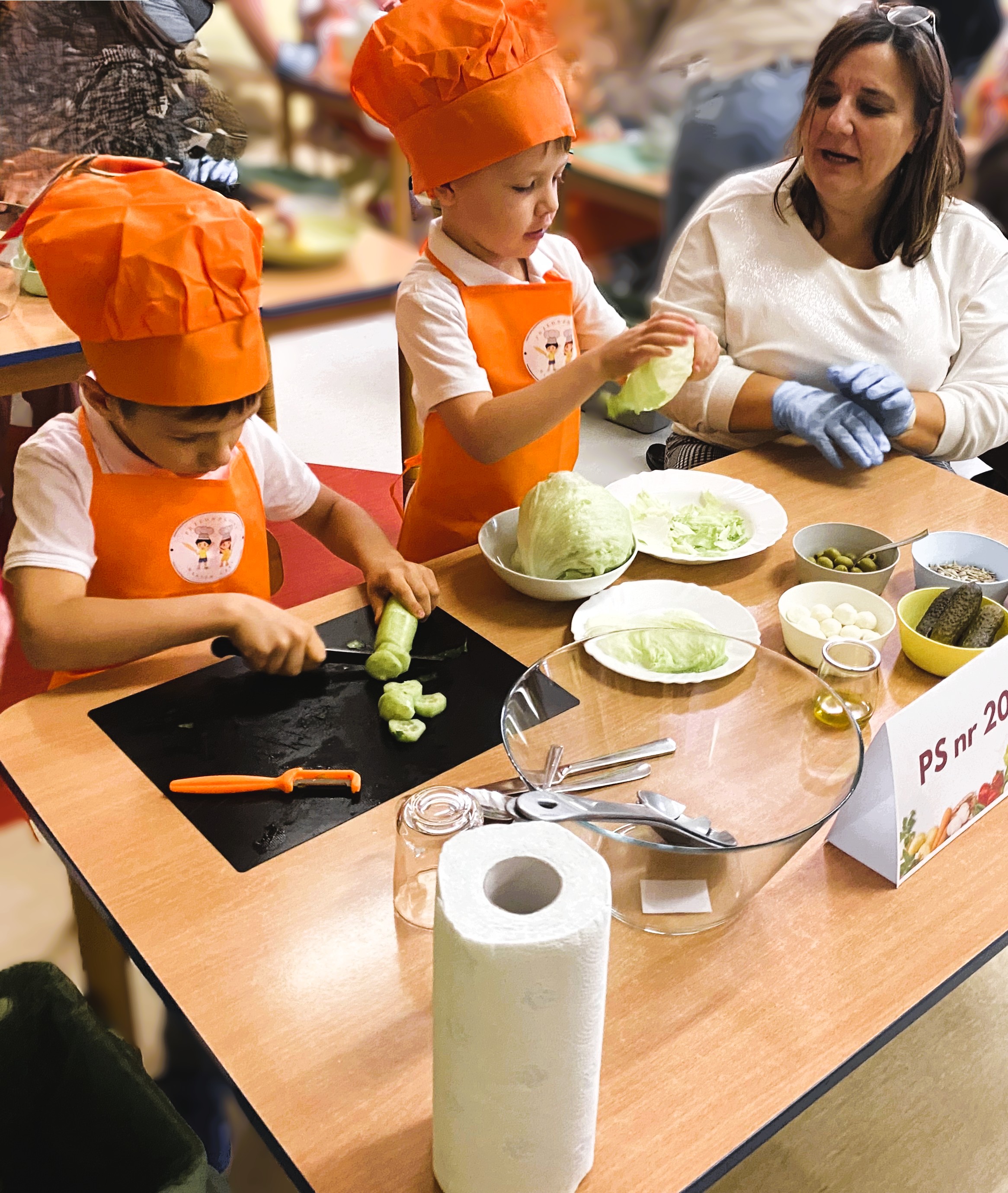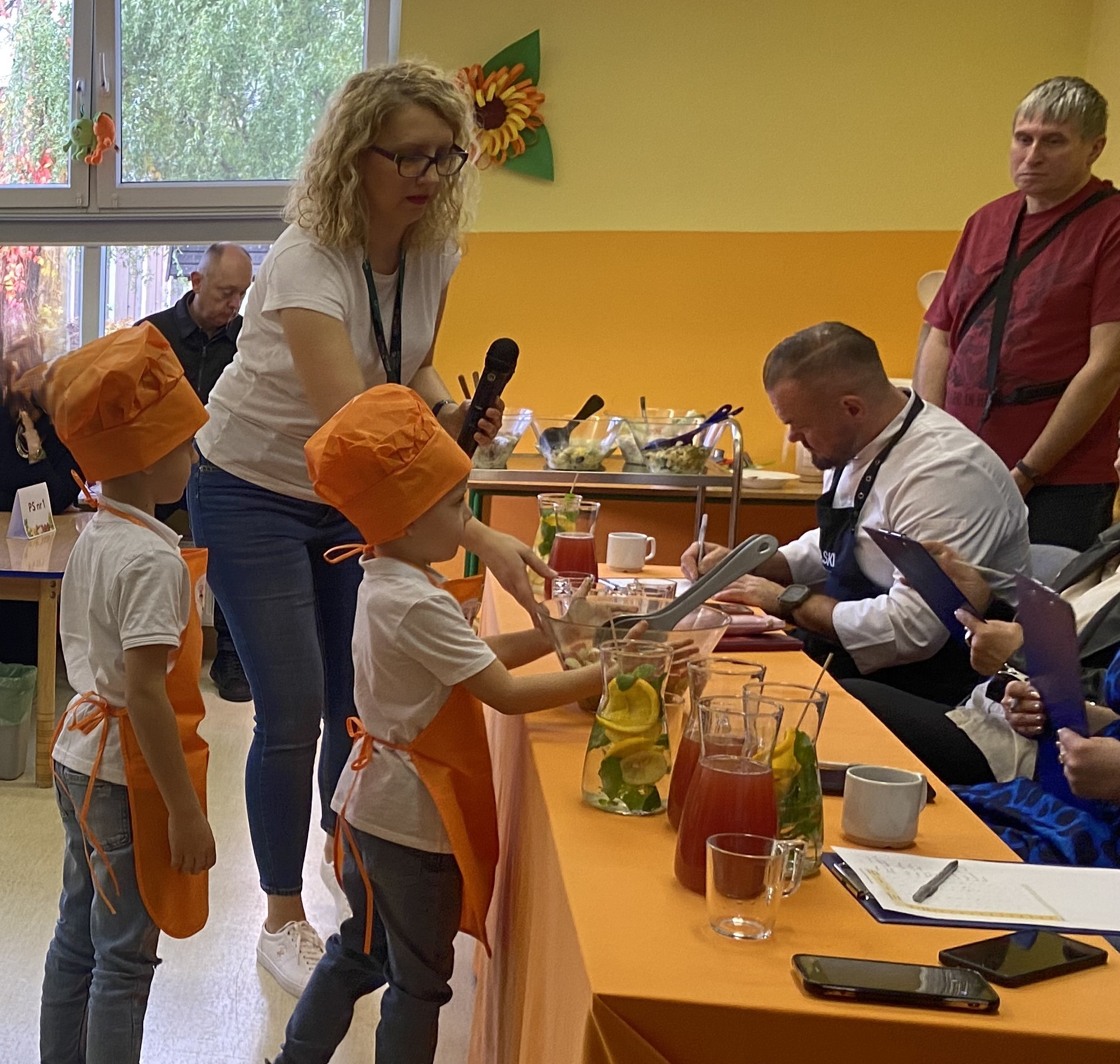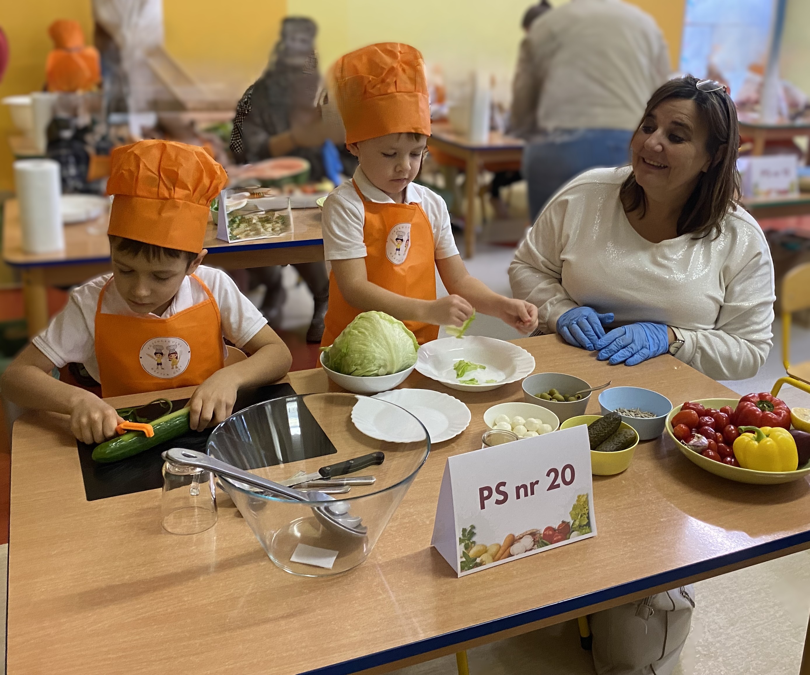 Nasze przedszkole w konkursie reprezentowali Oliwier K. i Krzysztof W. z grupy 4. Chłopcy samodzielnie przygotowali sałatkę i zaprezentowali przed jury jej walory zdrowotne. Gratulacje !!! Zdjęcia przedstawiają dzieci podczas konkursu Master Szef.