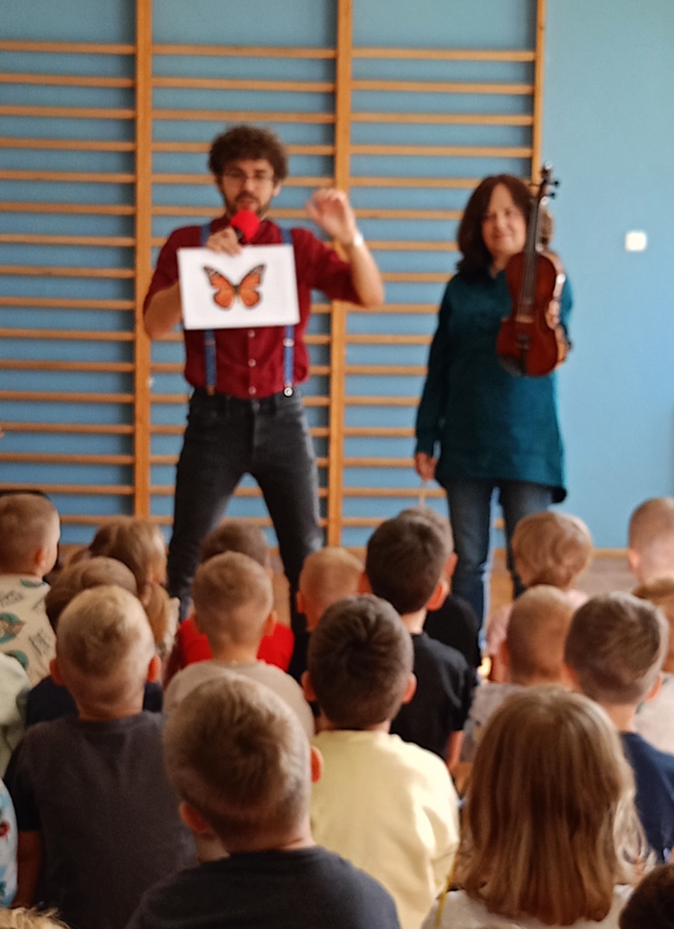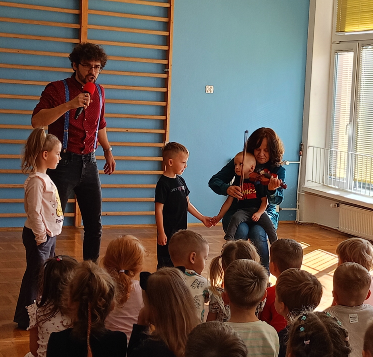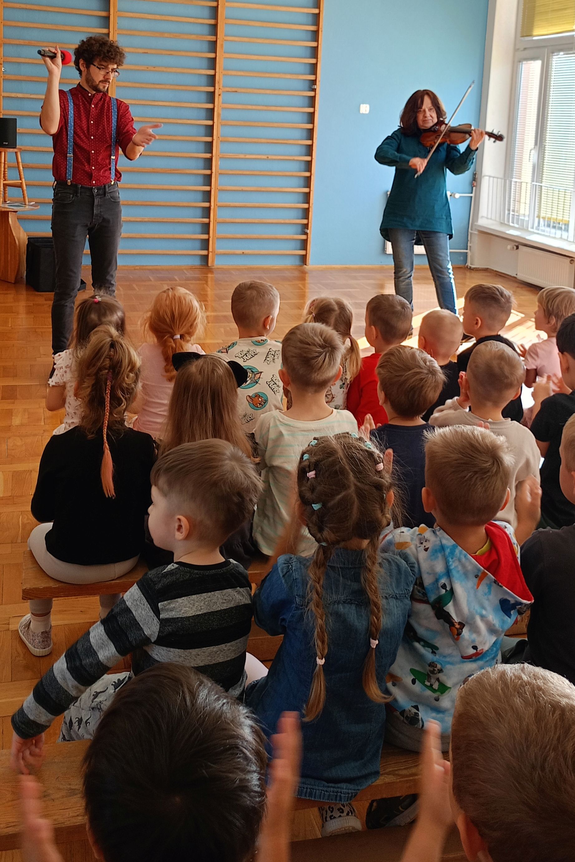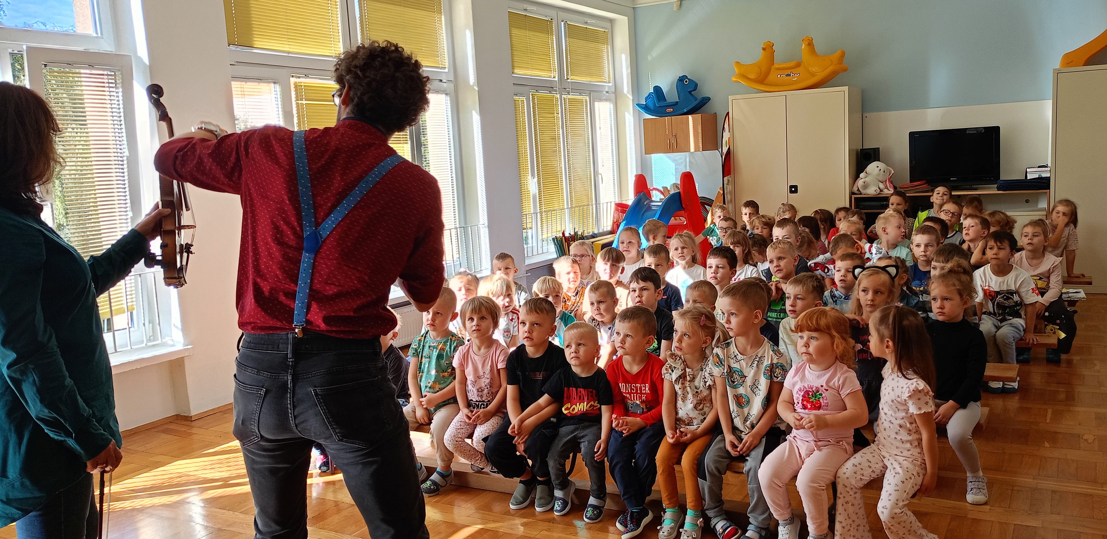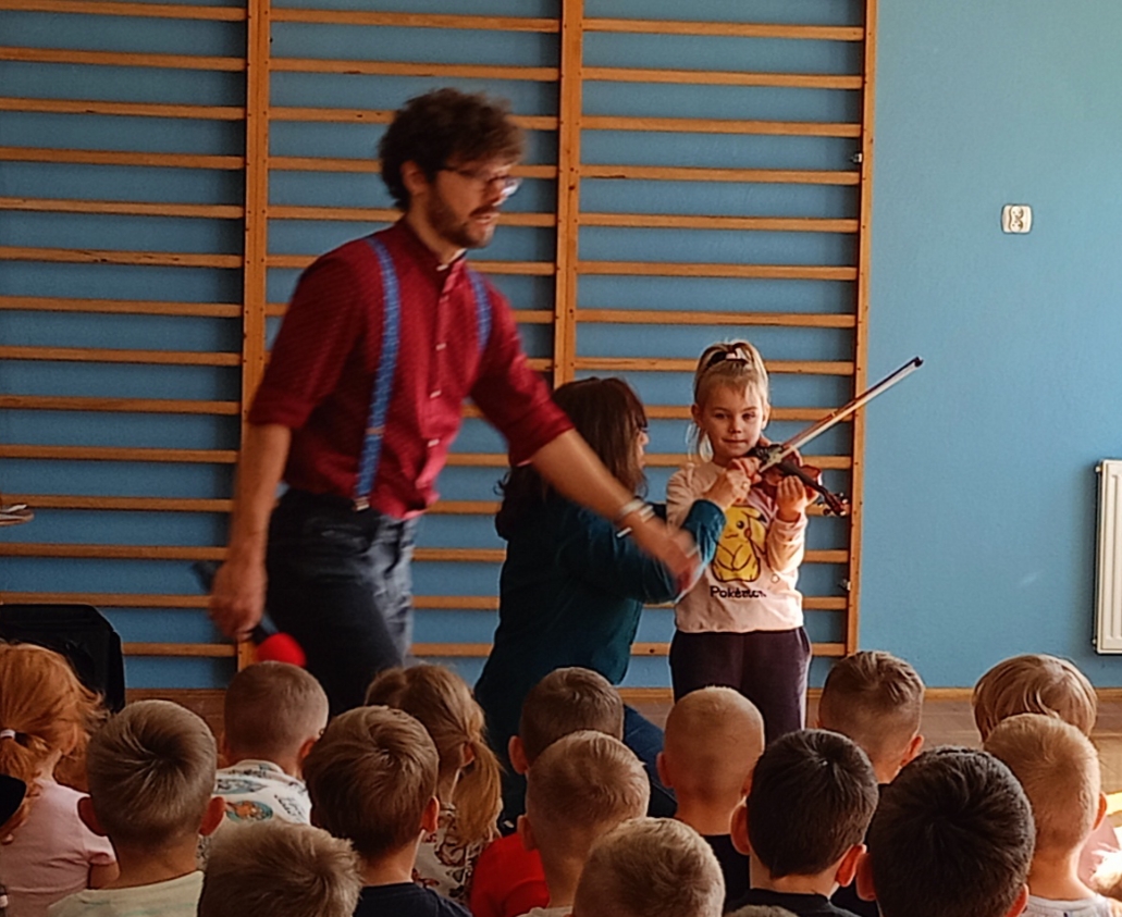 Poznaliśmy skrzypce, ich budowę oraz technike gry. Zdjęcia przedstawiają dzieci podczas koncertu.