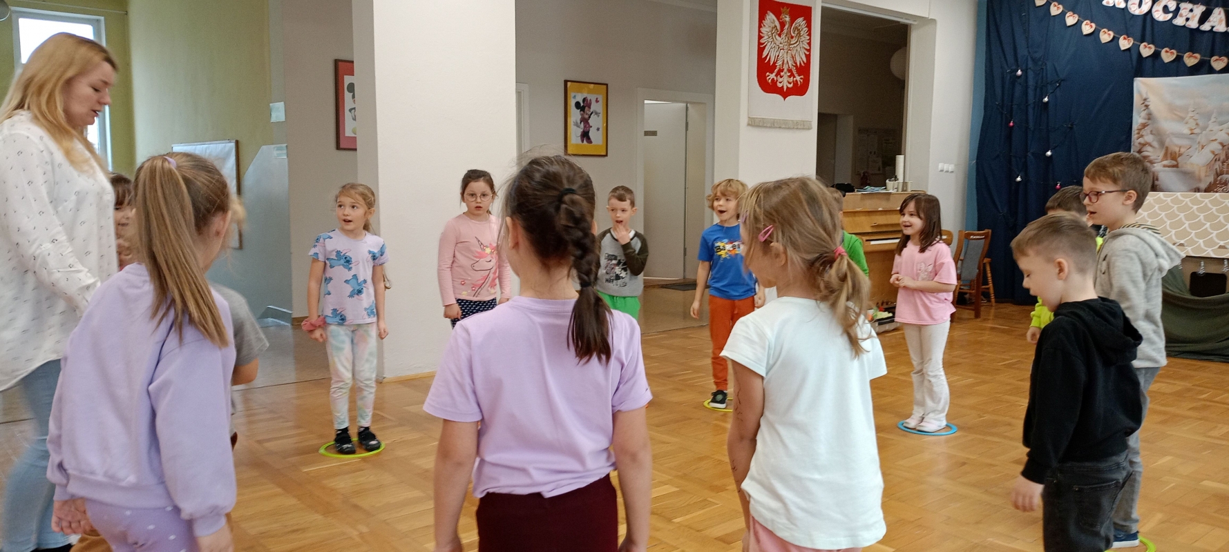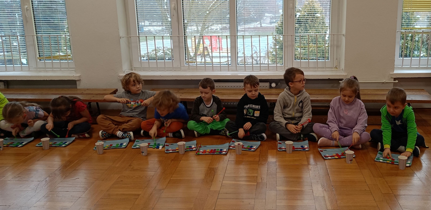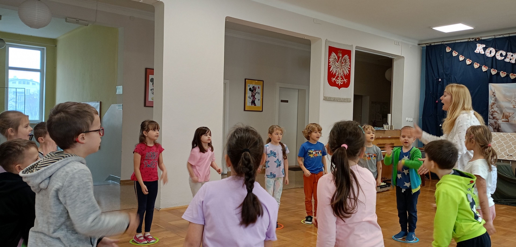 Pani Justyna na dzisiejszych warsztatach zrobiła nam kuhenne rewolucje. O rety jaka była frajda, graliśmy na łyżkach . Było super. Zdjęcia przedstawiają dzieci podczas warsztatów muzycznych .