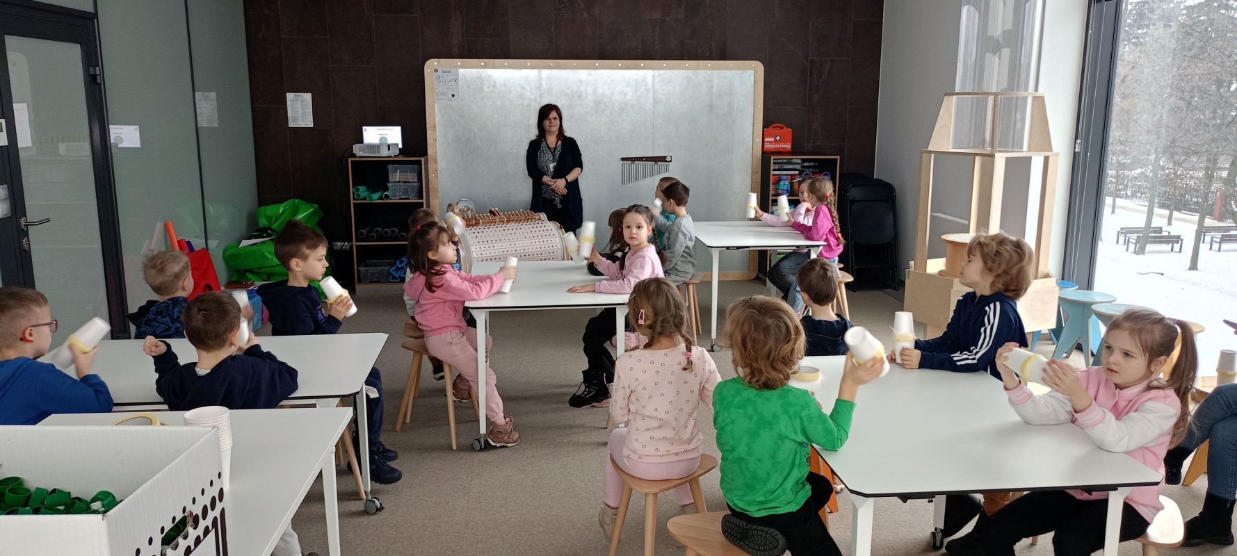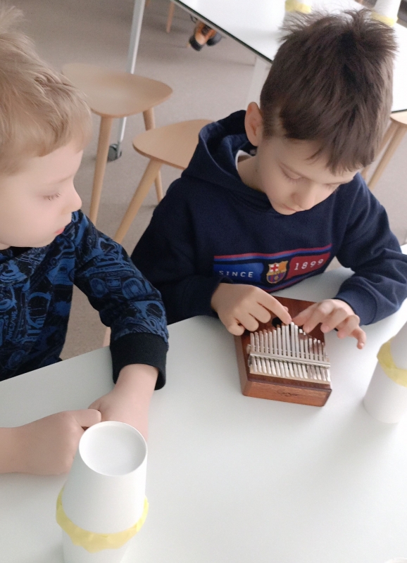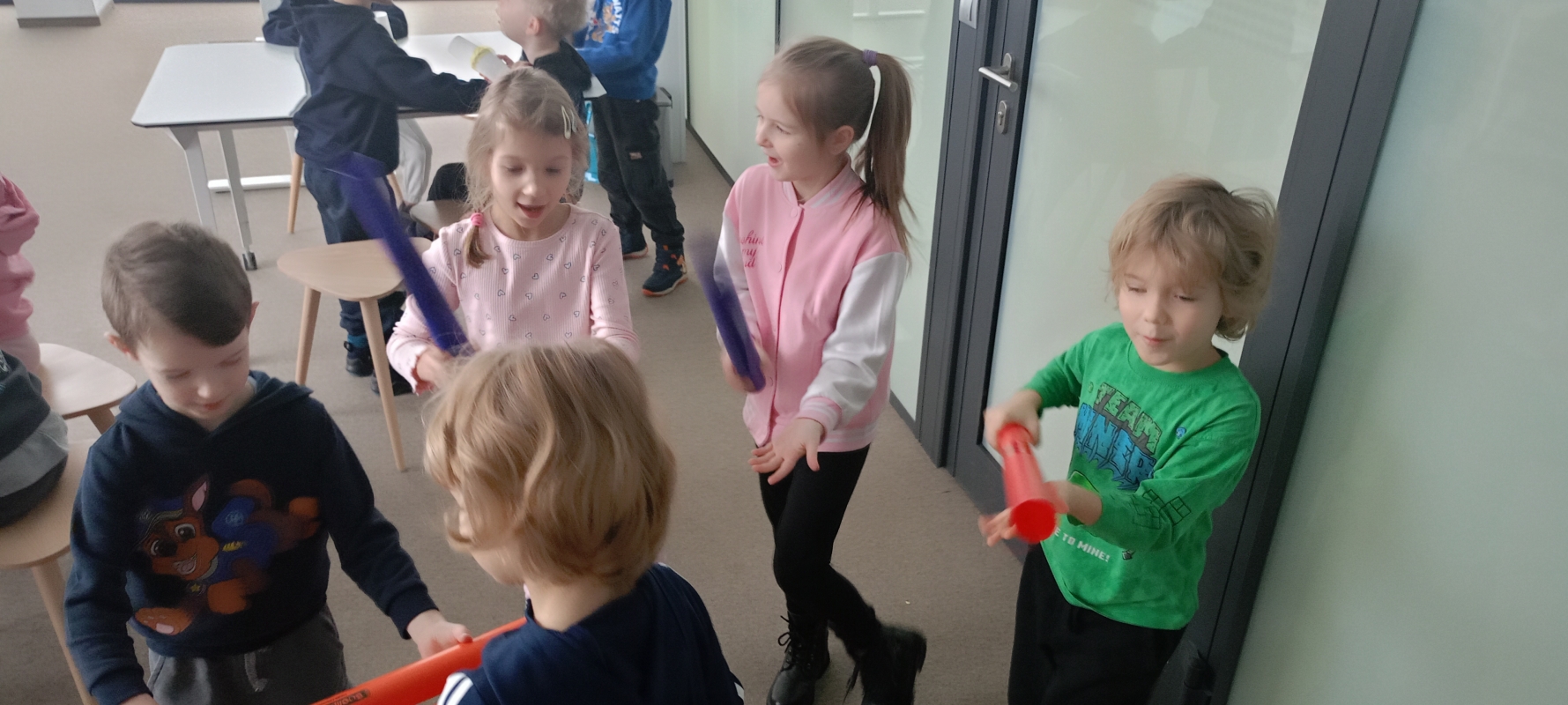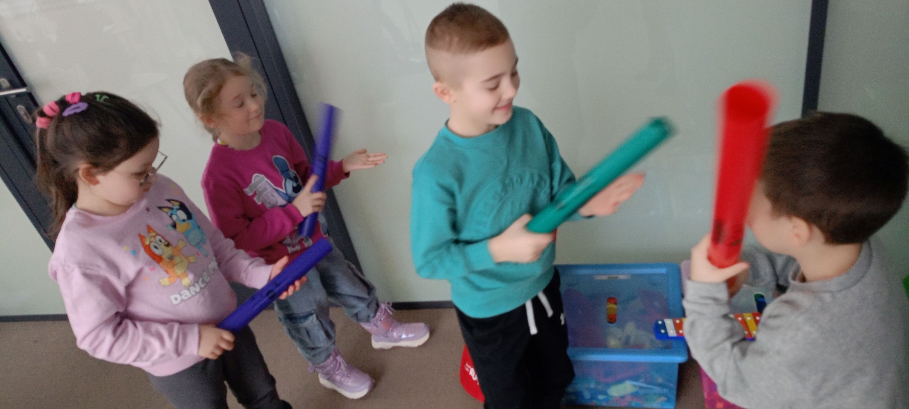 dzisiaj bylismy w Mediatece i uczestniczyliśmy w warsztacie ekologicznym "Muzyka z odpadów". Poznaliśmy wiele ciekawych instrumentów i sami również wykonalismy instrumenty. Zdjęcia przedstawiają dzieci podczas warsztatu.