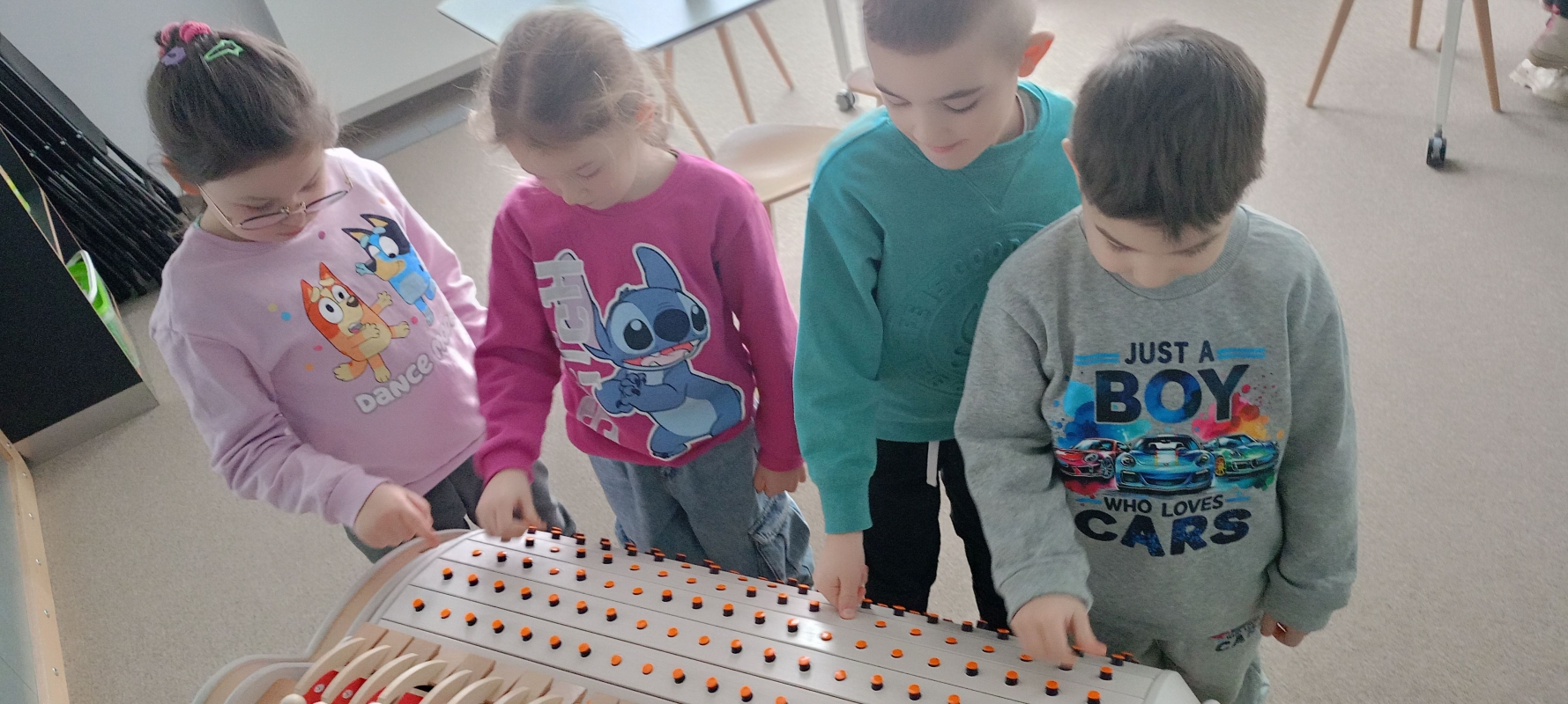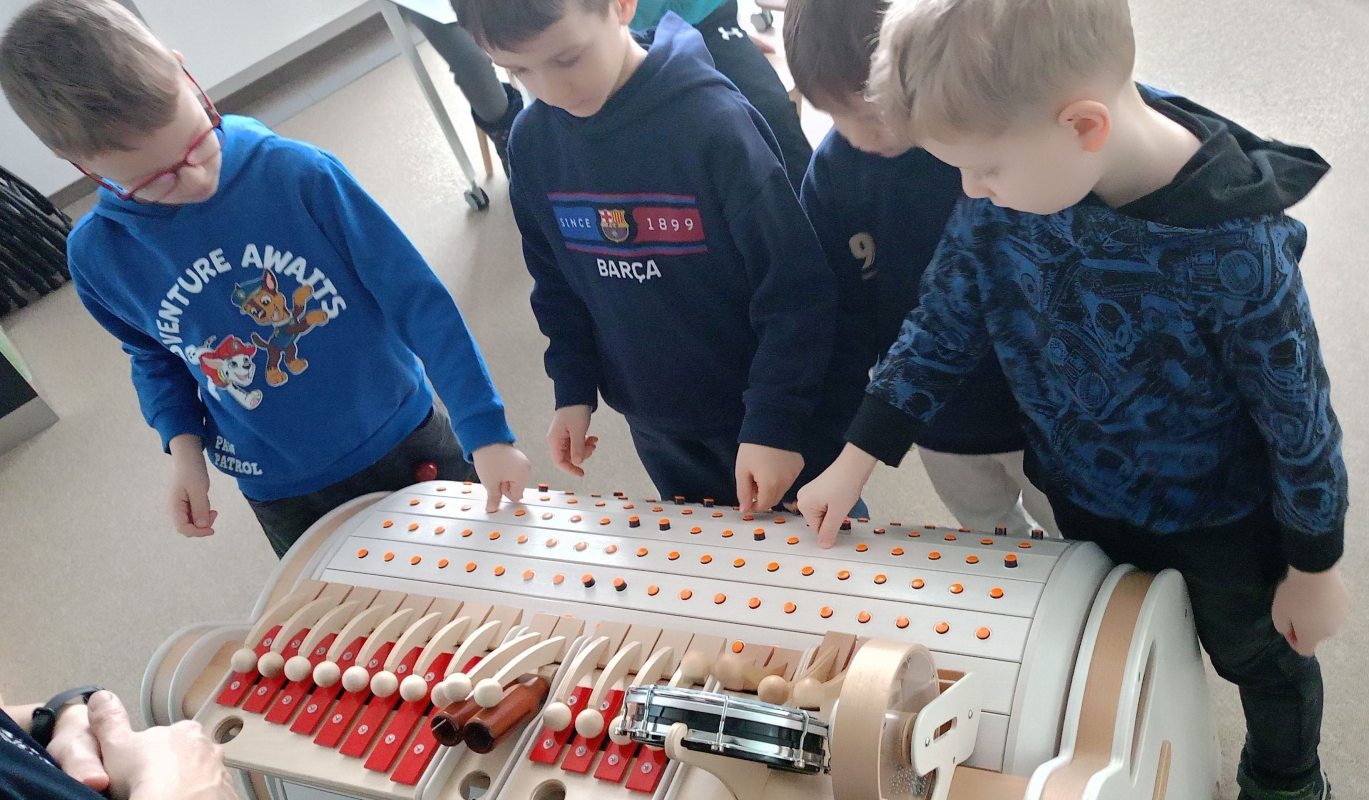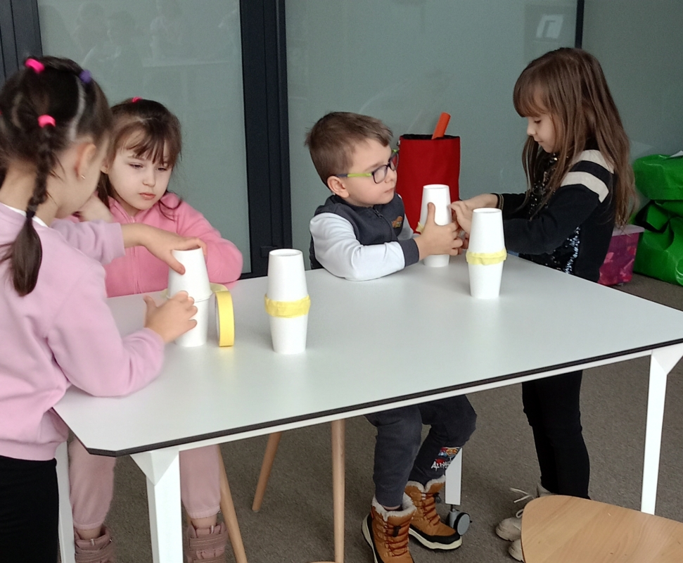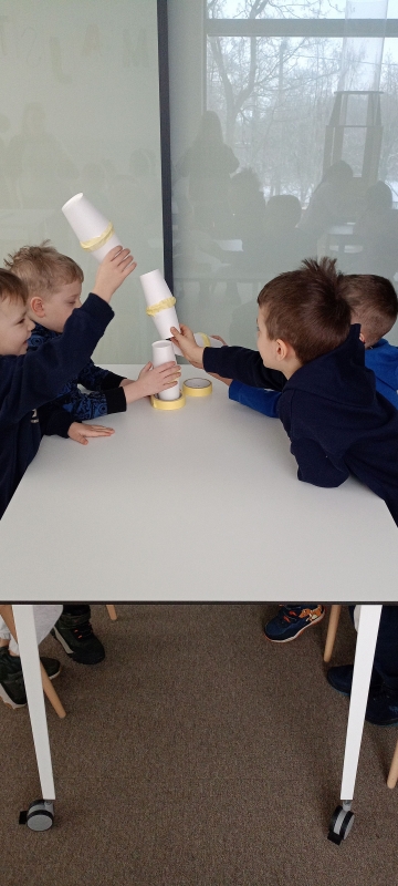 dzisiaj bylismy w Mediatece i uczestniczyliśmy w warsztacie ekologicznym "Muzyka z odpadów". Poznaliśmy wiele ciekawych instrumentów i sami również wykonalismy instrumenty. Zdjęcia przedstawiają dzieci podczas warsztatu.